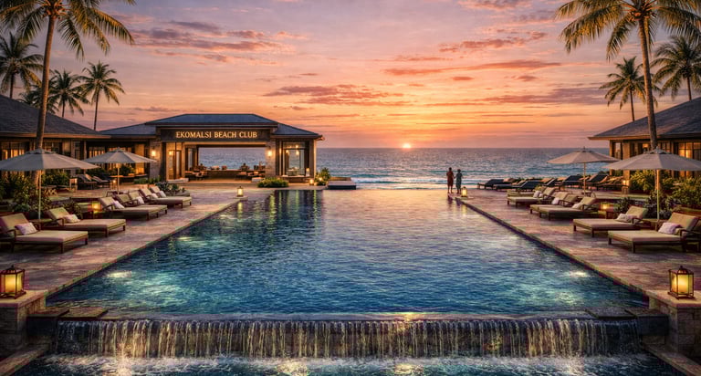 EKOMALSI is organized into three connected environments designed to guide guests from celebration to ca
